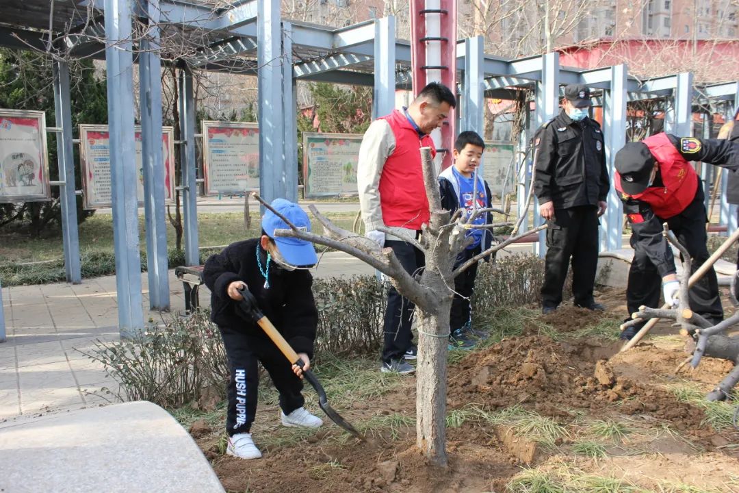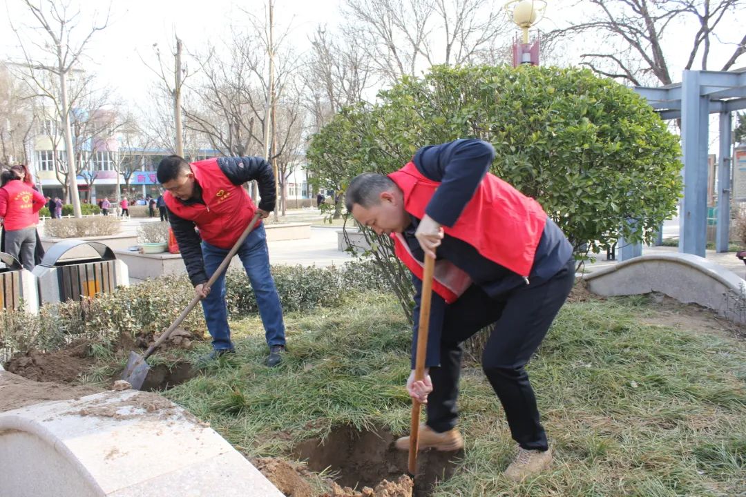 當天,志愿者身穿紅色志愿服,(更讓人興奮的是,參加此次活動的還有我們的小天使—孩子們)一起興高采烈地到活動地點—婦女兒童活動中心共同見證綠色復蘇、造福天下的偉業。活動現場,王新衛拿著鐵鍬,沖在前頭,在他的帶動下,大家揮锨鏟土、扶苗填坑、踏土固根,道道工序細致認真,各個環節銜接有序,志愿者們充分發揚不怕苦不怕累的作風,分工合作、齊心協力,個個熱情高漲、干勁十足。尤其我們的小天使也積較參與、不甘落后,使出渾身解數,忙得不亦樂乎。經過努力,一棵棵新栽的小樹迎風而立,展示出勃勃生機。