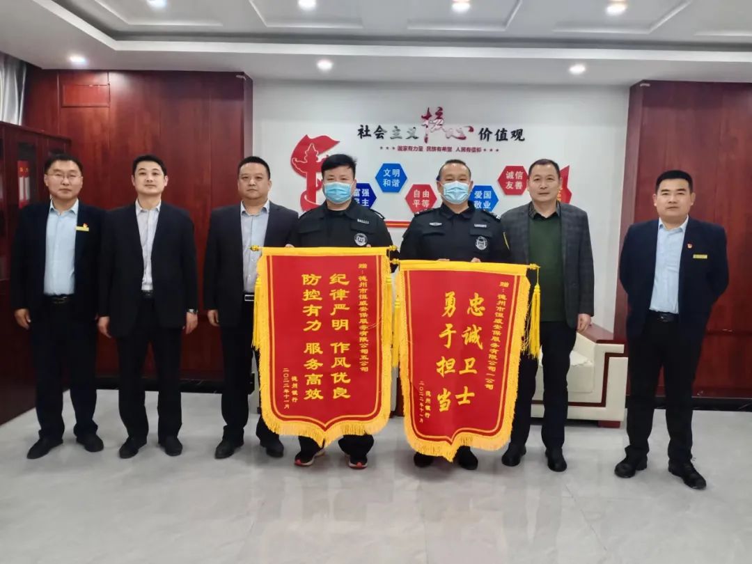 近日,德州市水利局領(lǐng)導、德州銀行領(lǐng)導先后到訪德州市恒威安保服務(wù)有限公司贈送錦旗,上面寫有“攜手助力戰(zhàn)疫情、共克時艱顯擔當”、“忠誠衛(wèi)士、勇于擔當”“紀律嚴明、作風優(yōu)良、防控有力、服務(wù)好的效率”,公司黨支部書記、總經(jīng)理王新衛(wèi),副總經(jīng)理王洪林、高印東、張有利參與來訪接待。