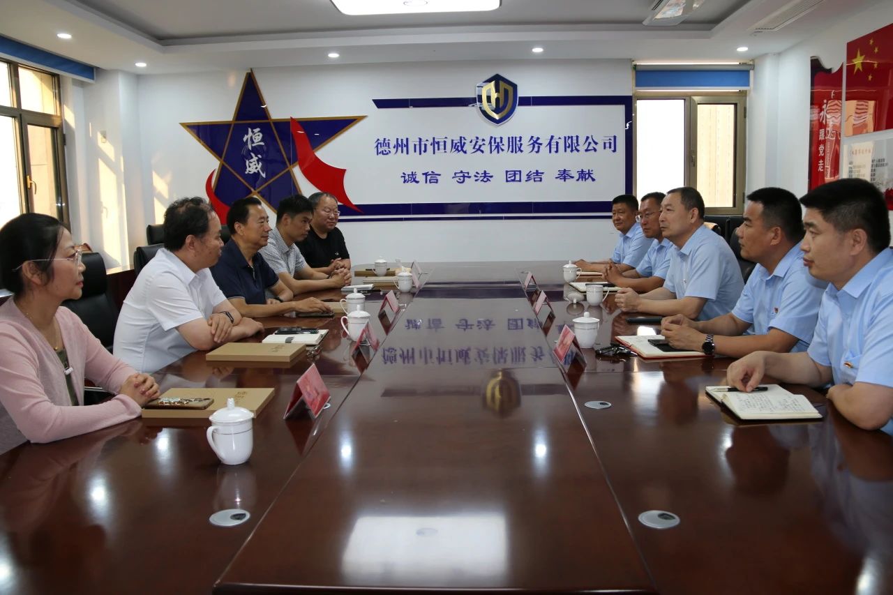 7月9日下午,德州市誠信文化建設團隊蒞臨德州市恒威安保服務有限公司調研并指導工作。山東誠信文化和綠色發展主題系列電影總策劃總制片人、德州市發改委原二級調研員高洪玉,德州市發改委信用科科長李佳林,德州市誠信文化促進會常務副會長、德州學院教授、文化學者黃金元,知名編劇、德州市電影家協會主席劉曉東,德州市誠信文化促進會秘書長,德州市電影家協會秘書長王玉心。公司黨支部書記、總經理王新衛、副總經理王洪林、高印東陪同調研。