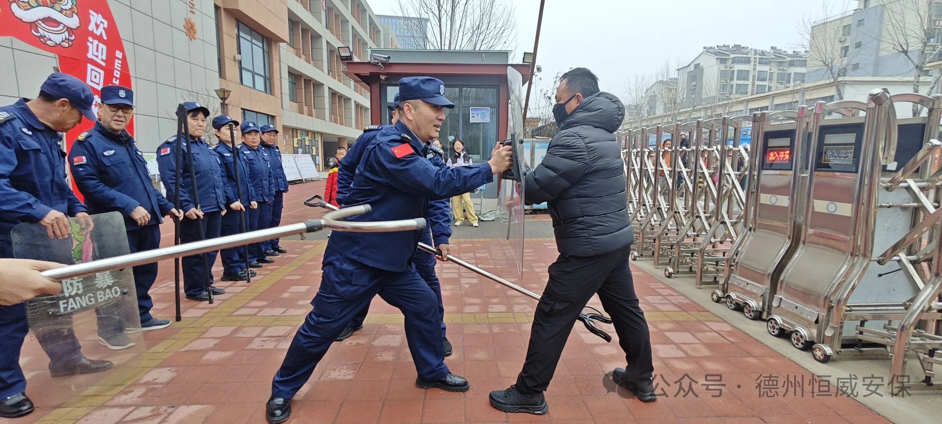 組織校園保安員開展常態化防暴演練。通過模擬校園常見暴力襲擊場景,不斷優化應急響應流程、防暴器械規范使用及協同處置技巧,切實增強校園保安員的安全防范意識與風險預判能力,全面提高面對突發事件時的快速反應與高效處置能力。