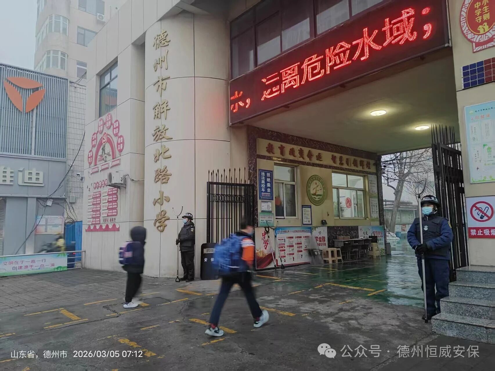 2026年3月5日,全市中小學新學期開學第一天,莘莘學子重返校園,開啟新一年的學習生活。為切實做好開學首日各項安全秩序維護工作,給廣大師生創造一個安全、有序、和諧的入學環境,公司高度重視,提前謀劃,周密部署,全體安保人員以最高標準、最嚴要求,全力以赴做好校園安全保障工作。