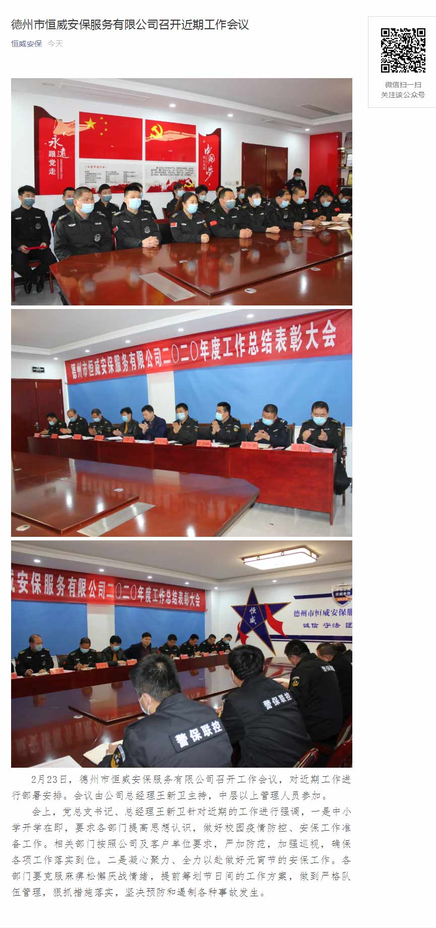 德州市恒威安保服務(wù)有限公司召開(kāi)近期工作會(huì)議