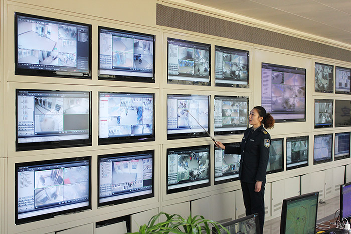 服務保障:全省首創智能預警中心監控與調度、專業人員接警與出警。(針對全國各地利用ATM自助設備實施智能犯罪、盜搶機動車等各類刑事案件,建立ATM自助設備監控平臺,將技防報警平臺和GPS汽車監控系統合并使用,打造成三臺合一的保安智能預警防控中心。中心監控平臺監視墻由30臺37寸液晶顯示器組成,監控采集鏡頭480個,實現對全市所有ATM設備的實時監控,對德州銀行、工行、建行共計190余個監控點的視頻實時監控。)