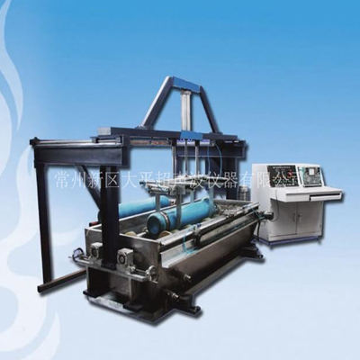 4、超聲波探頭液浸機(jī)械跟蹤系統(tǒng)自動(dòng)跟蹤,驅(qū)動(dòng)滾軸轉(zhuǎn)動(dòng)帶動(dòng)氣瓶旋轉(zhuǎn)前進(jìn),探傷機(jī)自動(dòng)探傷,檢出內(nèi)壁傷、外壁傷,縱向傷從左右兩個(gè)方向進(jìn)行檢測(cè),橫向傷從前后兩個(gè)方向同時(shí)進(jìn)行檢測(cè),測(cè)厚探頭檢出鋼瓶的厚度。